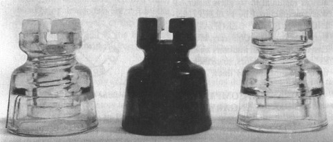 The insulator on the right is U-1278, almost identical to its glass sister. It was manufactured by PORZELLAN-