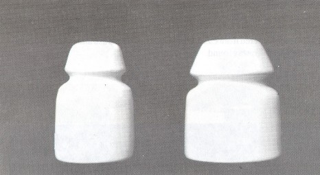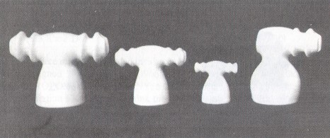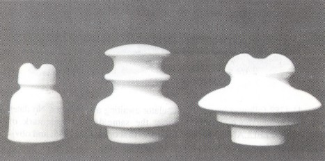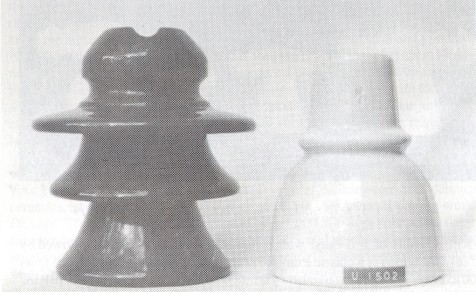 (L-R) Three marked and dated insulators -- U-1654 (1958), U-2121(1985), and