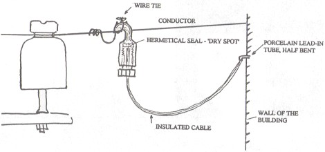 British practice, in order to make a telephone extension, a dry-spot insulator