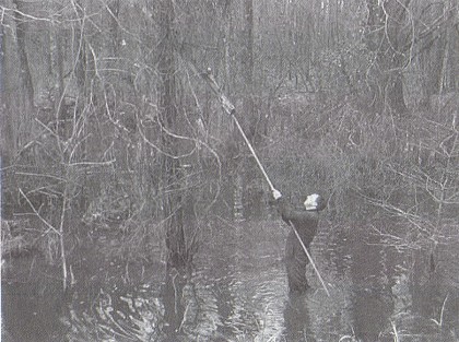 Charles Bibb at fallen pole.