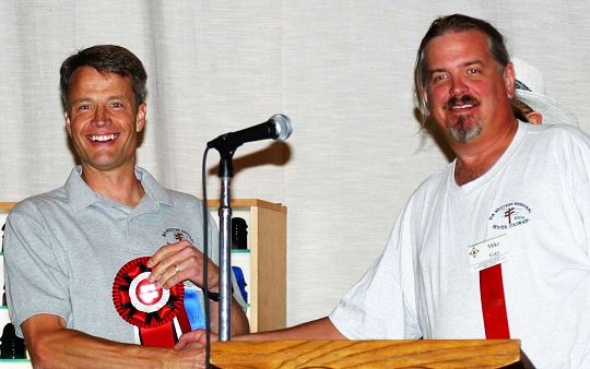 Mike Gay (R) presents an award to Mike Green for his great color exhibit.