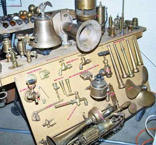 spectacular exhibit of old brass implements - what a display!