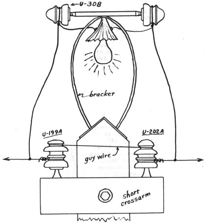 insulators on a pole top just to hang one arc lamp certainly deserves