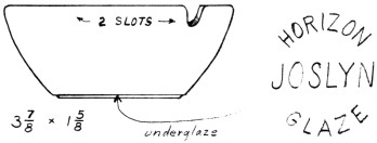 this item as late 1950's to early 1960's. The ashtray is drawn 1/2-size, the