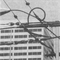 still in use on 600-volt dc trolley feeder lines and overhead trolley wires in