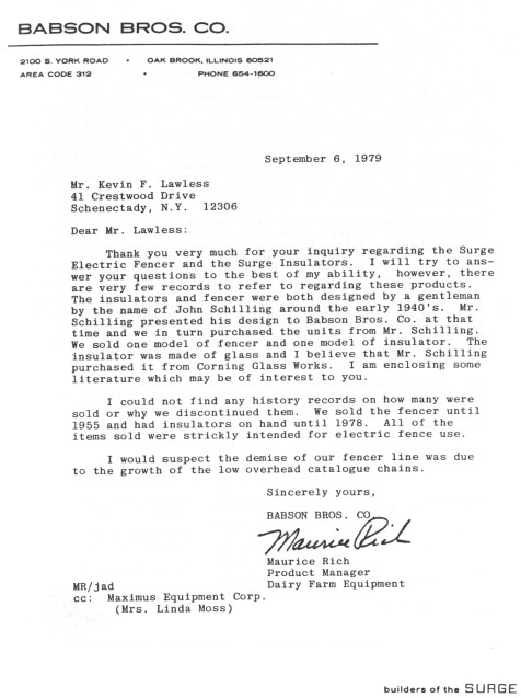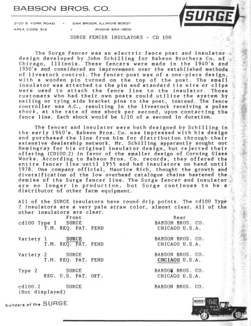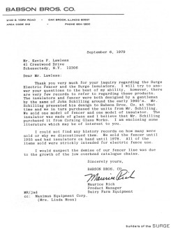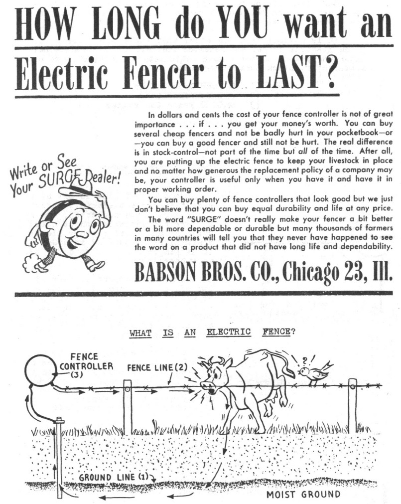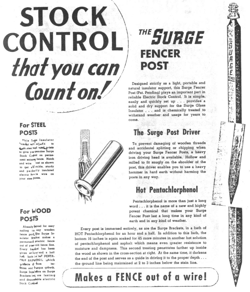 discontinued them. We sold the fencer until 1955 and had insulators on hand