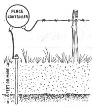 above the ground for convenience in connecting. the ground wire to the fencer.