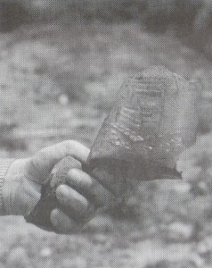 Several shovels of dirt overturned by Roger coughed up pieces of olive Hemingray
